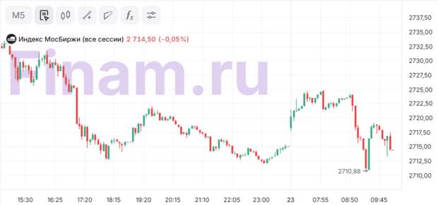 К 10:10 мск индекс МосБиржи перешел в «красную» зону, теряя 0,05%, до 2714,5 пункта, следует из данных торгов.