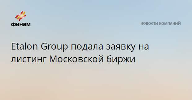 Etalon Group PLC представила документы, включая проспект эмиссии, на "Московскую Биржу" для составления списка глобальных депозитарные расписок группы "Эталон" (ISIN US29760G1031) на Московской бирже и включение этих ценных бумаг в "Список уровня 1".