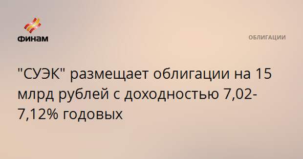 "СУЭК" размещает облигации на 15 млрд рублей с доходностью 7,02-7,12% годовых