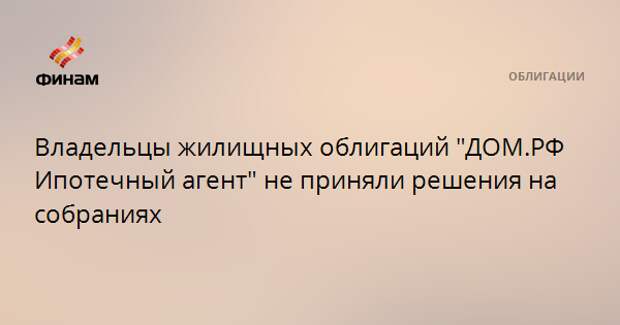 Владельцы жилищных облигаций "ДОМ.РФ Ипотечный агент" не приняли решения на собраниях