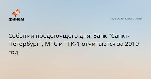 События предстоящего дня: Банк "Санкт-Петербург", МТС и ТГК-1 отчитаются за 2019 год