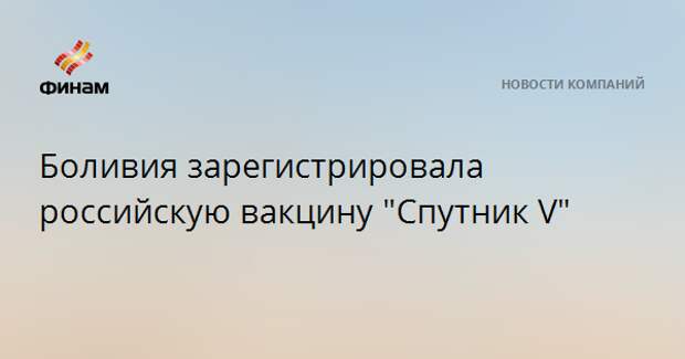 Боливия зарегистрировала вакцину "Спутник V" на основе российских данных клинических исследований, сообщил РФПИ.