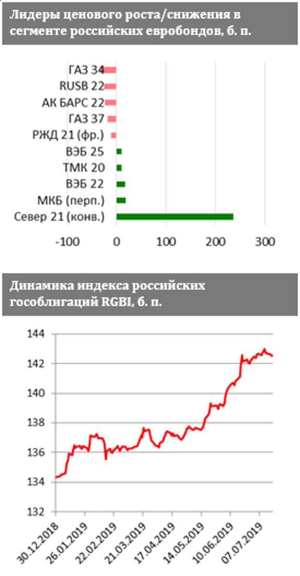 Сектор ОФЗ: без изменений. Ценовой повышательный импульс иссяк и на рынке рублевого долга. Директор департамента денежно-кредитной политики Центробанка РФ Алексей Заботкин в интервью Bloomberg заявил: "С точки зрения платежного баланса в целом мы видим, что у корпоративного сектора есть большой запас валютной ликвидности, который сформирован за IV квартал 2018 г. - I квартал 2019 г., произошло снижение внешних обязательств. Поэтому мы исходим из того, что платежный баланс на ближайшие кварталы больших вопросов не вызывает".