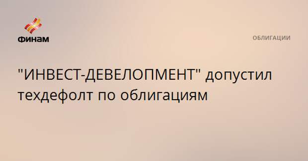 "ИНВЕСТ-ДЕВЕЛОПМЕНТ" допустил техдефолт по облигациям