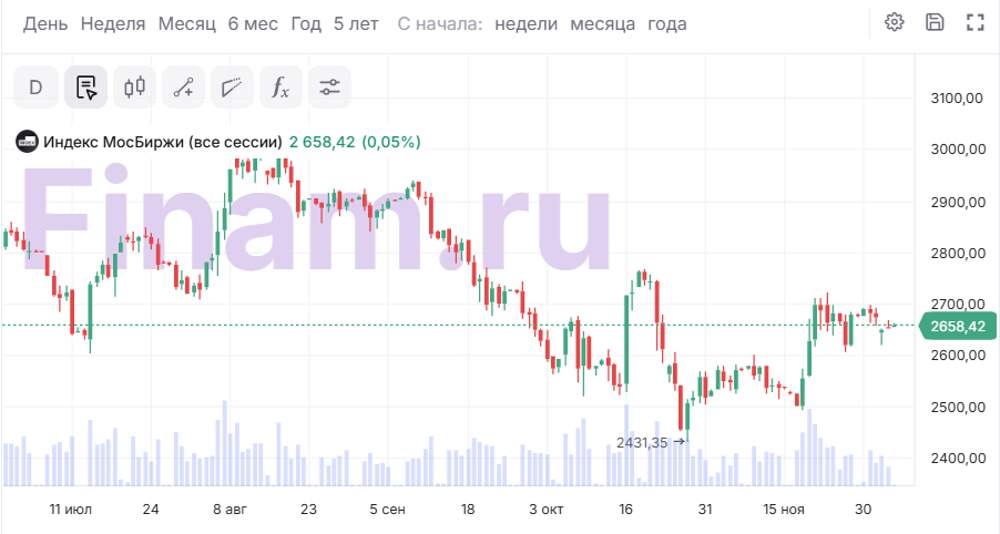 Крепкий рубль сдерживает рост акцийРынок растет в конце недели, прибавляя 0,16% по индексу МосБиржи, который находится на отметке 2661,3 пункта. С ним растут бумаги “РусГидро” (+3,31%), ТГК-1 (+1,8%), “СОЛЛЕРСа” (+1,37%), а падают ВК (-0,66%), ДВМП (-0,4%), “Озона” (-0,25%). Рост на рынке мог бы